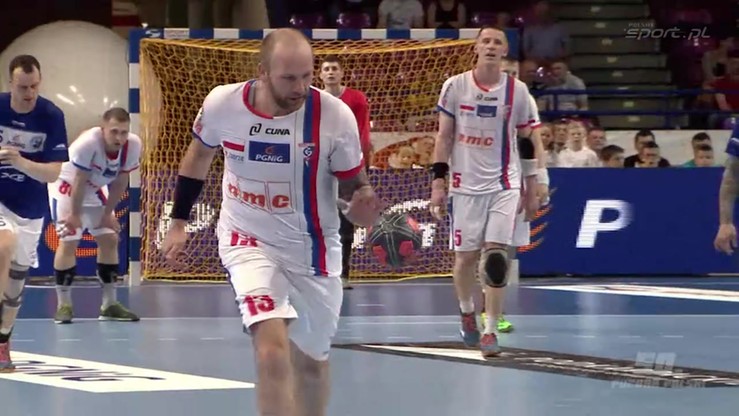 W drugiej części gry, przy wysokim prowadzeniu zabrzanie pozwolili rywalom na zbyt wiele, mieli problemy ze skutecznością, nie trafiali z rzutów karnych. Zawodnicy Stali zmniejszyli straty do rywali, ale nie byli na tyle skuteczni w ataku, by zdołać odwrócić losy tej konfrontacji. W ostatniej minucie Mariusz Jurasik zdobył swą dziewiątą w tym spotkaniu i ostatnią w bogatej karierze bramkę. Stal jeszcze odpowiedział trafieniem, zabrzanie nie wykorzystaliw ostatnich sekundach rzutu karnego i mecz zakończył się ostatecznie wynikiem 33:27.