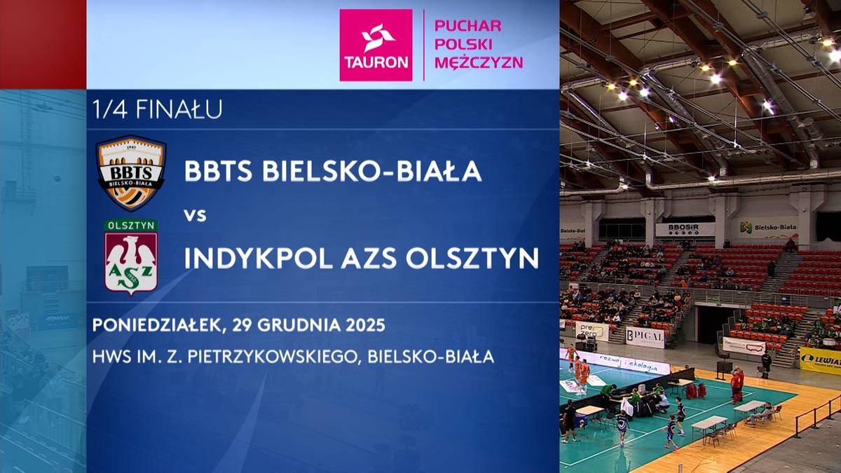 BBTS Bielsko-Biała - Indykpol AZS Olsztyn. Skrót meczu29.12.2025SiatkówkaTwoja przeglądarka nie wspiera odtwarzacza wideo...Zobacz takżePierwszy półfinalista Pucharu Polski siatkarzy już znany! Wystarczyły trzy setyFacebookTwitterWykopSkrót meczu BBTS Bielsko-Biała - Indykpol AZS Olsztyn.BBTS BIELSKO-BIAŁAINDYKPOL AZS OLSZTYNPLUSLIGASIATKÓWKATOP WIDEOPolsatSport.pl w wersji na telefony z systemem Android i iOS!Najnowsze informacje i wiadomości na bieżąco, gdziekolwiek jesteś.Dostępne w Google PlayPobierz z App Store