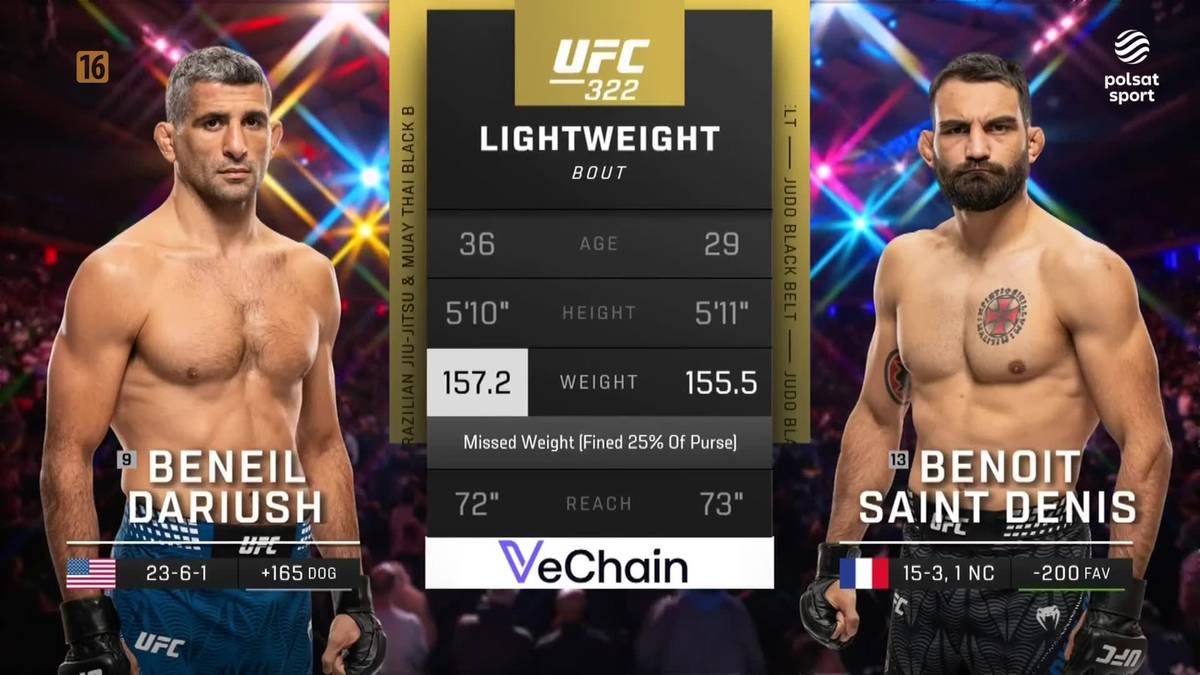 Skrót walki Beneil Dariush - Benoit Saint Denis na gali UFC 322 w Nowym Jorku.