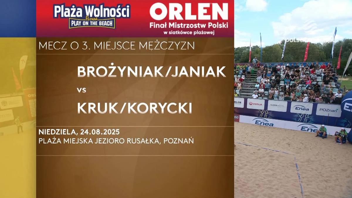 Skrót meczu Jędrzej Brożyniak/ Piotr Janiak - Miłosz Kruk/ Michał Korycki o 3. miejsce ORLEN Mistrzostw Polski w siatkówce plażowej.