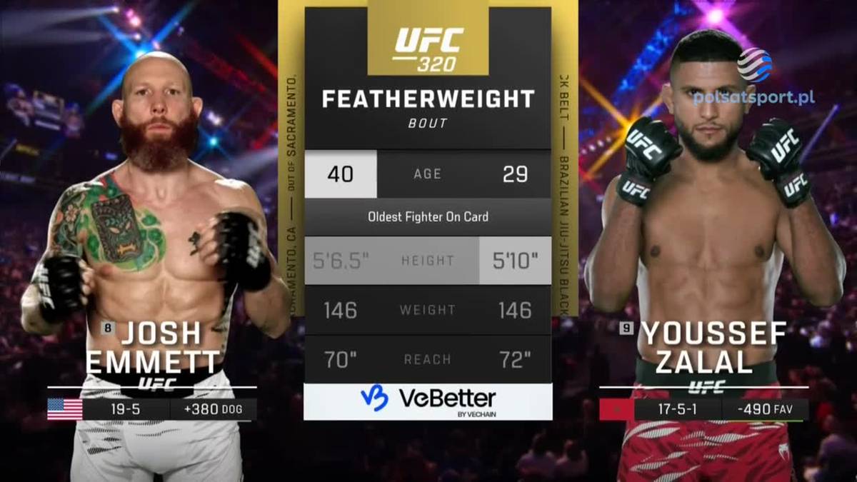 Skrót walki Josh Emmett - Youssef Zalal na gali UFC 320 w Las Vegas.