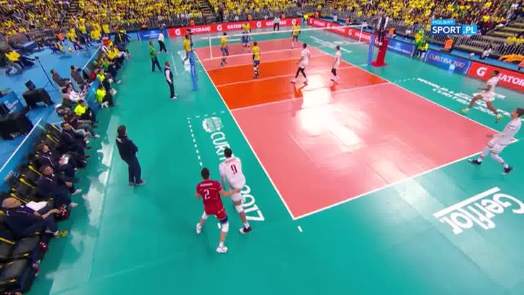 Fragment meczu finałowego Ligi Światowej Brazylia - Francja.