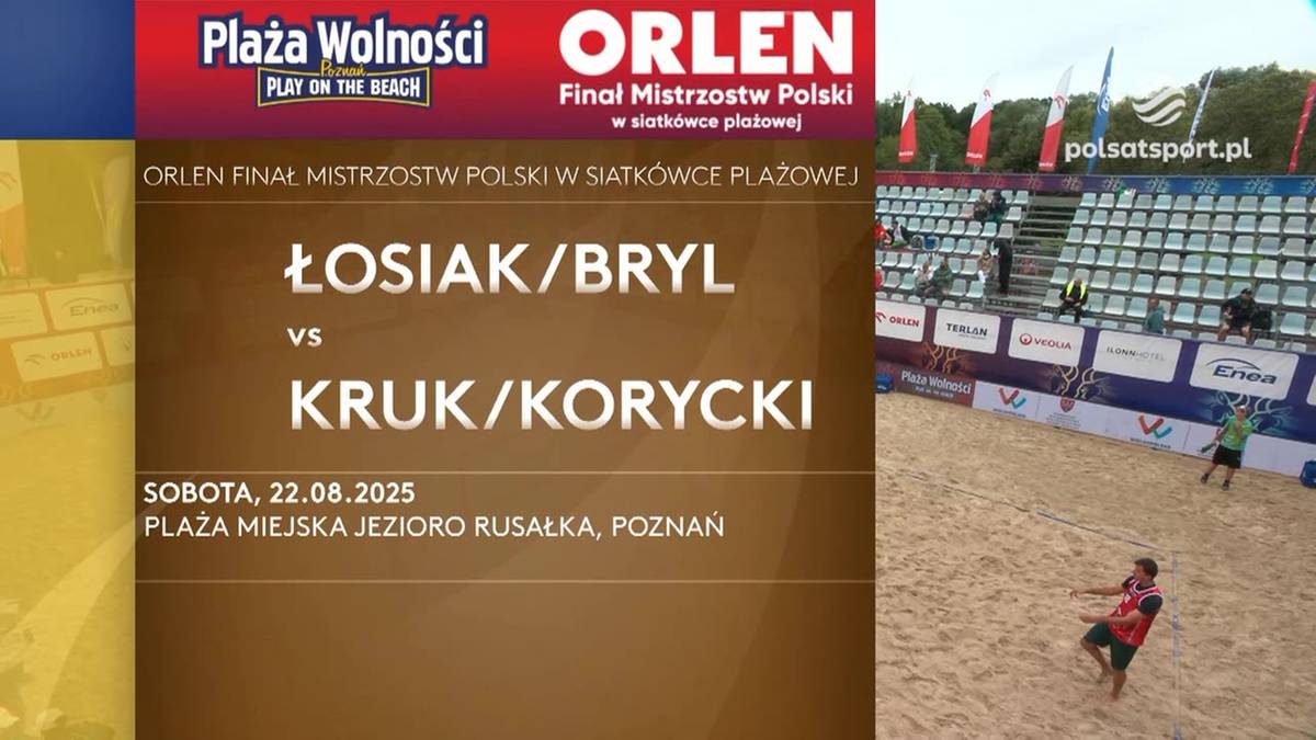 Skrót meczu Bartosz Łosiak/ Michał Bryl - Miłosz Kruk/ Michał Korycki z ORLEN mistrzostw Polski w siatkówce plażowej.