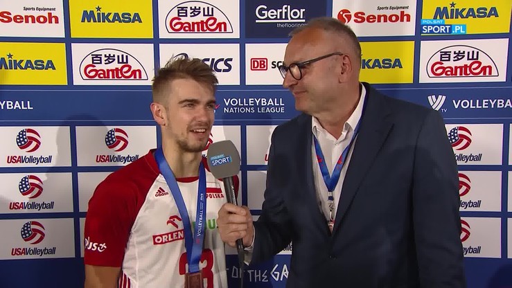 Jakub Popiwczak po meczu Polska – Brazylia (25:17, 25:23, 25:21) o brązowy medal Ligi Narodów siatkarzy 2019.