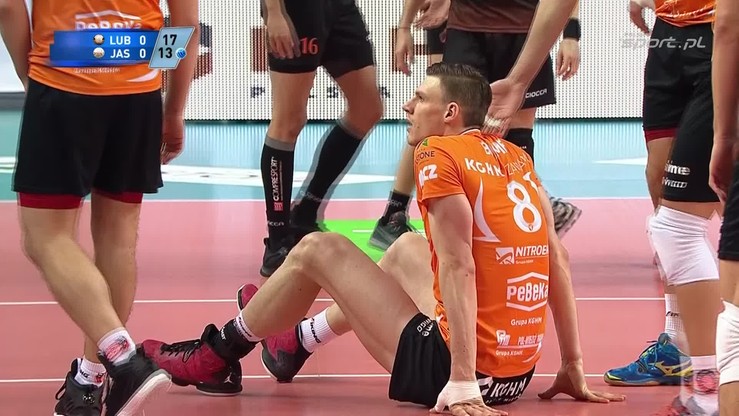 Sytuacja z meczu 23. kolejki PlusLigi Cuprum Lubin - Jastrzębski Węgiel.
