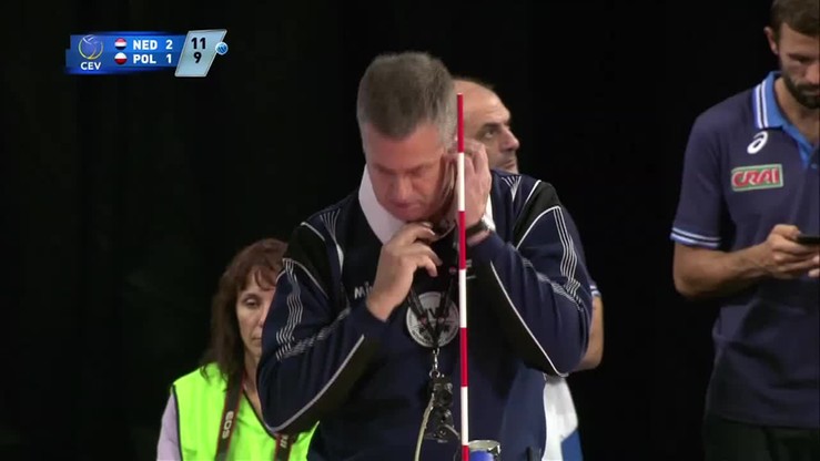 Sytuacja z meczu mistrzostw Europy siatkarek Holandia - Polska 3:1.