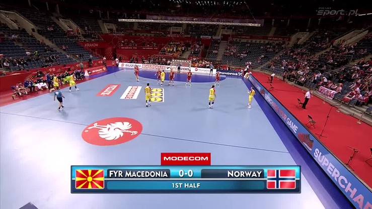 Zawodnik FC Barcelona w samej pierwszej połowie zdobył siedem goli na osiem prób. Dwa trafienia dołożył jego brat Filip i w konsekwencji Macedonia prowadziła po pierwszej połowie 17:13. Najlepszy w starciu z Polską Espen Lie Hansen zdobył zaledwie trzy bramki.