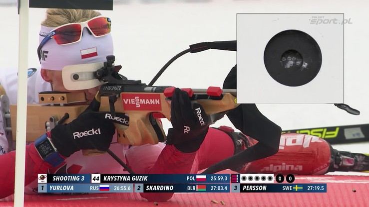 Krystyna Guzik: Nie do końca jest radość, bo czuję przykrość, iż na drugim „leżaku” miałam ten jeden błąd. Była szansa, aby dobrze strzelić, ale zawiewało śniegiem i jeden drobinek wpadł mi w przyrządy. Musiałem je przedmuchać, aby widzieć obraz, i to wybiło mnie z rytmu strzeleckiego. Miałam mniej czasu, aby przygotować się do drugiego strzału. No i on był spudłowany. Trener powiedział mi, że to był strzał na krawędzi, czasami takie „zamykają się”. Mi się jednak nie zamknął… Szansa przepadła.