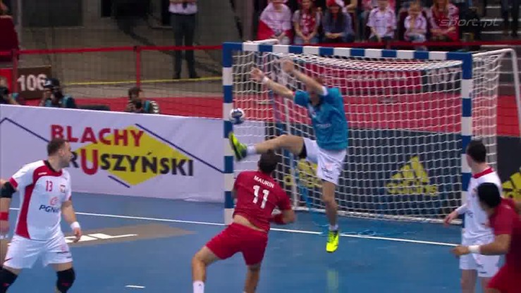 Dobrze na środku rozegrania spisywał się debiutujący w reprezentacji Gierak, problemów ze zdobywaniem bramek nie miał też Michał Szyba. Jego dwa trafienia ustaliły wynik pierwszej połowy, po której Polacy prowadzili 19:13. Po zmianie stron ich przewaga szybko urosła do ośmiu goli (23:15), głównie za sprawą skutecznej egzekucji rzutów karnych przez Karola Bieleckiego.