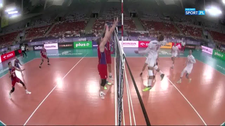 Było 35:34 dla Francji, więc Rosjanie bronili piłki setowej. Wydawało się, że po mocnym ataku z lewego skrzydła nic nie jest już w stanie uratować "Trójkolorowych", lecz libero Jenia Grebennikov miał nieco inne zdanie i zdecydował się na walkę. Nie dość, że bez problemu złapał piłkę, to jeszcze idealnie ułożył ręce do wystawy spod bandy!