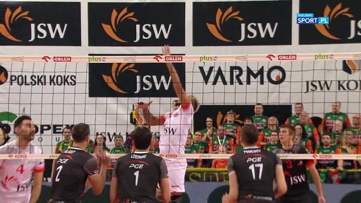 Występ przeciwko PGE Skrze w załączonym materiale wideo.