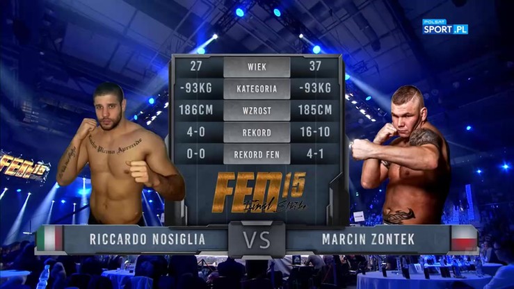 -93 kg; MMA: Riccardo Nosiglia (5-0, 5 KO) pokonał przez techniczny nokaut w pierwszej rundzie Marcina Zontka (16-10, 2 NC, 8 KO, 5 SUB)