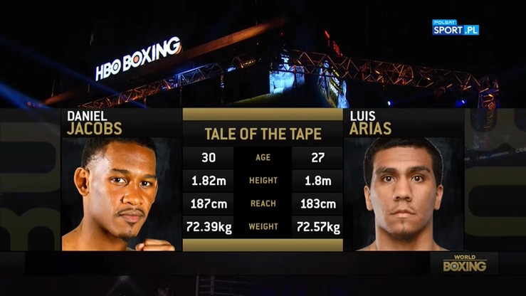 Daniel Jacobs (33-2, 29 KO) pokonał Luisa Ariasa (18-1, 9 KO) przez jednogłośną decyzję sędziowską (119-109, 120-107, 119-108)