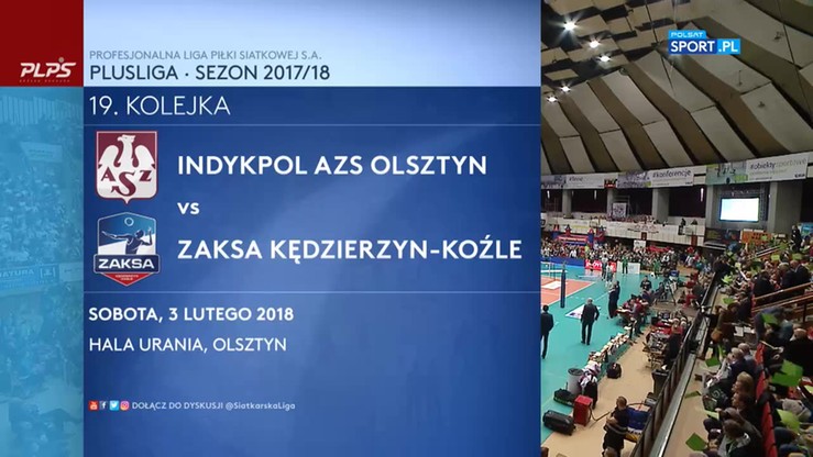 W meczu 19. kolejki PlusLigi siatkarze Indykpolu AZS Olsztyn przegrali z ZAKSĄ Kędzierzyn-Koźle 0:3. Mistrzowie Polski przełamali się po serii nieudanych gier w ostatnim okresie.