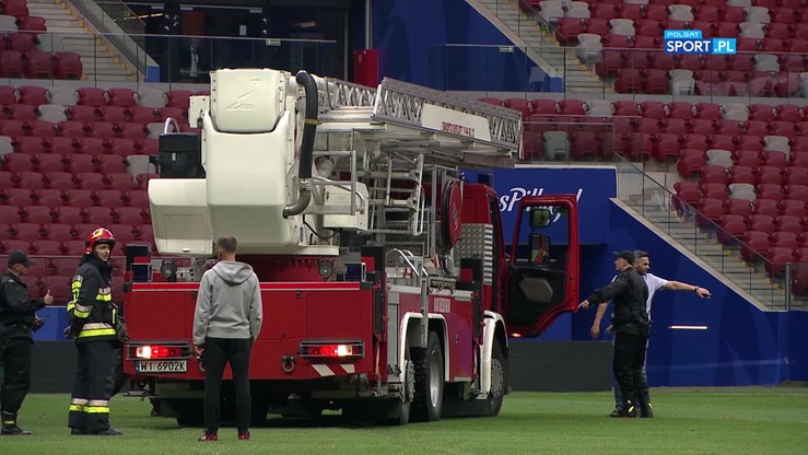 Tuż po zakończeniu spotkania kamery telewizyjne zarejestrowały, jak górne partie PGE Narodowego są gaszone przez straż pożarną, która musiała wjechać na murawę stadionu.