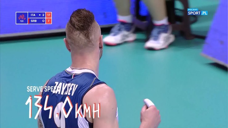Zagrywki z taką szybkością nie zdarzają się często! Podczas meczu Ligi Narodów Włochy – Serbia (3:0) Ivan Zaytsev posłał na stronę rywali serwis z prędkością 134 km/h!