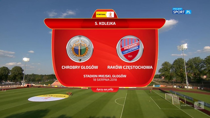 Raków Częstochowa pokonał na wyjeździe Chrobrego Głogów 1:0. Jedynego gola strzelił Karol Mondek. Podpieczni Marka Papszuna z dziesięcioma punktami są liderami w tabeli Fortuna 1 Ligi.