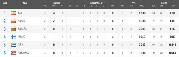 W swym trzecim spotkaniu na mistrzostwach świata w siatkówce reprezentacja Polski wygrała w Warnie z Finlandią 3:1. Podopieczni trenera Vitala Heynena odnieśli trzecie zwycięstwo i zapewnili sobie awans do kolejnej fazy turnieju. We wcześniejszym sobotnim meczu w grupie D Iran pokonał Kubę 3:1.