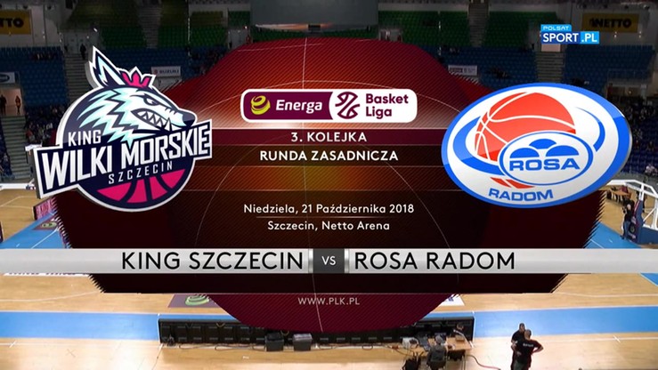 Szczecinianie od początku spotkania pokazywali swoje spore możliwości w ataku. Prym wiedli Paweł Kikowski i Tauras Jogela, a po akcji 2+1 Łukasza Diduszki było już 12:2. W Rosie starali się na to odpowiadać głównie Cullen Neal oraz Carl Lindbom, ale to na tym etapie nie wystarczało. Po 10 minutach gospodarze prowadzili 20:12. W drugiej kwarcie radomianie byli trochę bardziej skuteczni, a po trójce Lindboma zbliżyli się nawet na dwa punkty. King nie chciał pozwolić już na nic więcej i szybko ponownie budował przewagę. Głównie dzięki trafieniom Sajusa i Jogeli pierwsza połowa zakończyła się wynikiem 45:30.