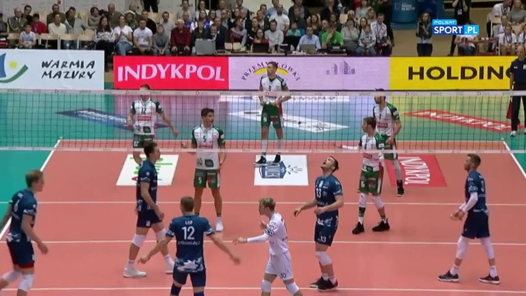 Atakujący drużyny z Olsztyna zaatakował po ciasnym skosie, obok antenki i piłka przeszła na stronę rywali. Wymianę przerwał jednak arbiter, dopatrując się błędu Hadravy.