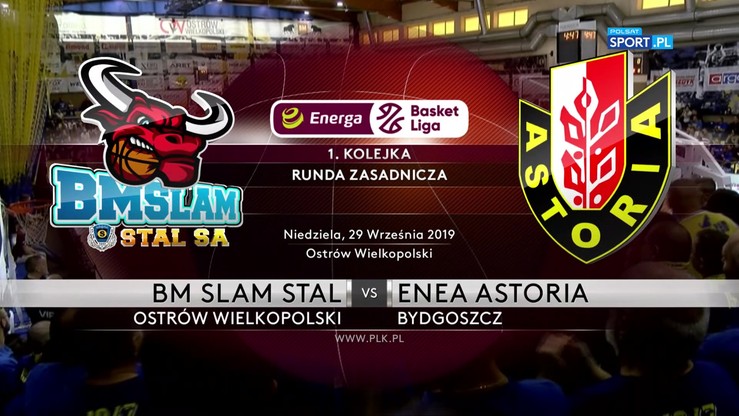 Początek spotkania należał do beniaminka, który po kontrach Mateusza Zębskiego prowadził 6:2. Później ta przewaga wzrosła nawet do siedmiu punktów po zagraniu A.J. Waltona. Gospodarze mieli problemy z konstruowaniem swoich akcji ofensywnych, a po trafieniach z dystansu Michała Aleksandrowicza prowadzenie Enea Astorii wzrosło aż do 13 punktów! Po 10 minutach goście wygrywali 28:12. Sytuację starał się w drugiej kwarcie zmienić Jay Threatt, dodatkowo akcje pod koszem zaczął kończyć Yancy Gates. Po kolejnej akcji rozgrywającego BM Slam Stal zbliżyła się już na zaledwie trzy punkty! Rzut Michała Chylińskiego sprawił, że ekipa trenera Artura Gronka po pierwszej połowie prowadziła, ale tylko 37:35.