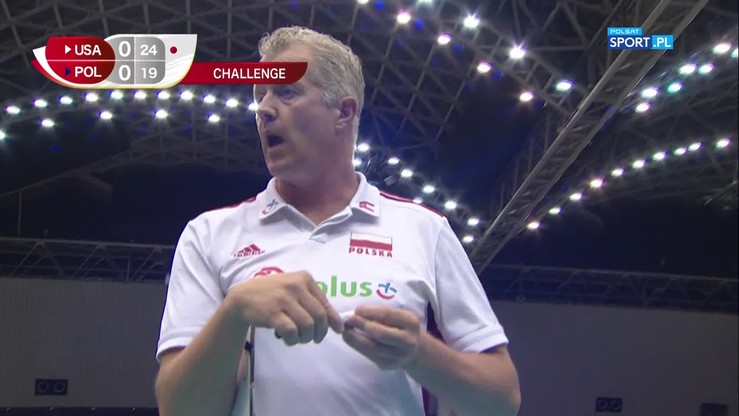 Premierowa partia miała początkowo wyrównany przebieg. Na pierwszą przerwę techniczną, po asie serwisowym Mateusza Bieńka, Polacy schodzili z dwoma oczkami zaliczki (8:6). Amerykanie zaczęli przejmować inicjatywę w okolicach drugiej przerwy technicznej (15:16). Polacy mieli problemy ze skończeniem ataków, a rywale byli skuteczniejsi. Pokazali moc w ofensywie i w polu zagrywki, dołożyli dobrą grę w obronie i w efekcie w końcówce mieli wyraźną przewagę. Aaron Russell wywalczył piłkę setową, a Maxwell Holt zakończył seta punktową zagrywką (19:25).