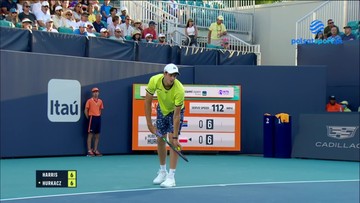 Pierwszy set pojedynku z 44. w światowym rankingu Harrisem przebiegał zgodnie z regułą własnego podania. Dwa "breaki" miał w siódmym gemie zawodnik z Kapsztadu, ale ich nie wykorzystał. W tie-breaku było całkiem inaczej - częściej górą był odbierający. Na początku minimalną przewagę zyskał Harris, ale od stanu 3-2 punktował już tylko Hurkacz.