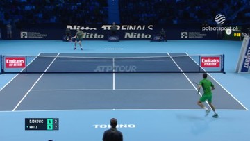 Serb Novak Djokovic został pierwszym finalistą tenisowego turnieju ATP Finals w Turynie. W półfinale pokonał debiutującego w tej imprezie Amerykanina Taylora Fritza 7:6 (7-5), 7:6 (8-6). Późnym wieczorem w drugiej parze Rosjanin Andriej Rublow zmierzy się z Norwegiem Casperem Ruudem.