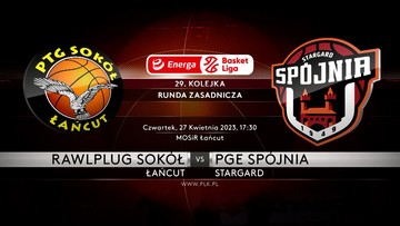 PGE Spójnia Stargard pokonała w Łańcucie Rawlplug Sokół 83:79 w jedynym czwartkowym spotkaniu 29. kolejki Energa Basket Ligi.