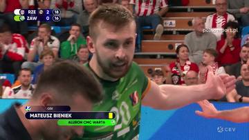 Ważny moment trzeciego seta i całego meczu, Mateusz Bieniek asekuruje atak Trevora Clevenot, jego zespół ma szansę, by wyrównać na 17:17, ale sędzia Serhij Hulka odgwizduje piłkę rzuconą. Ta decyzja arbitra głównego spotkania 1/4 finału Pucharu CEV pomiędzy Asseco Resovią Rzeszów a Aluronem CMC Wartą Zawiercie bardzo zdenerwowała środkowego reprezentacji Polski.