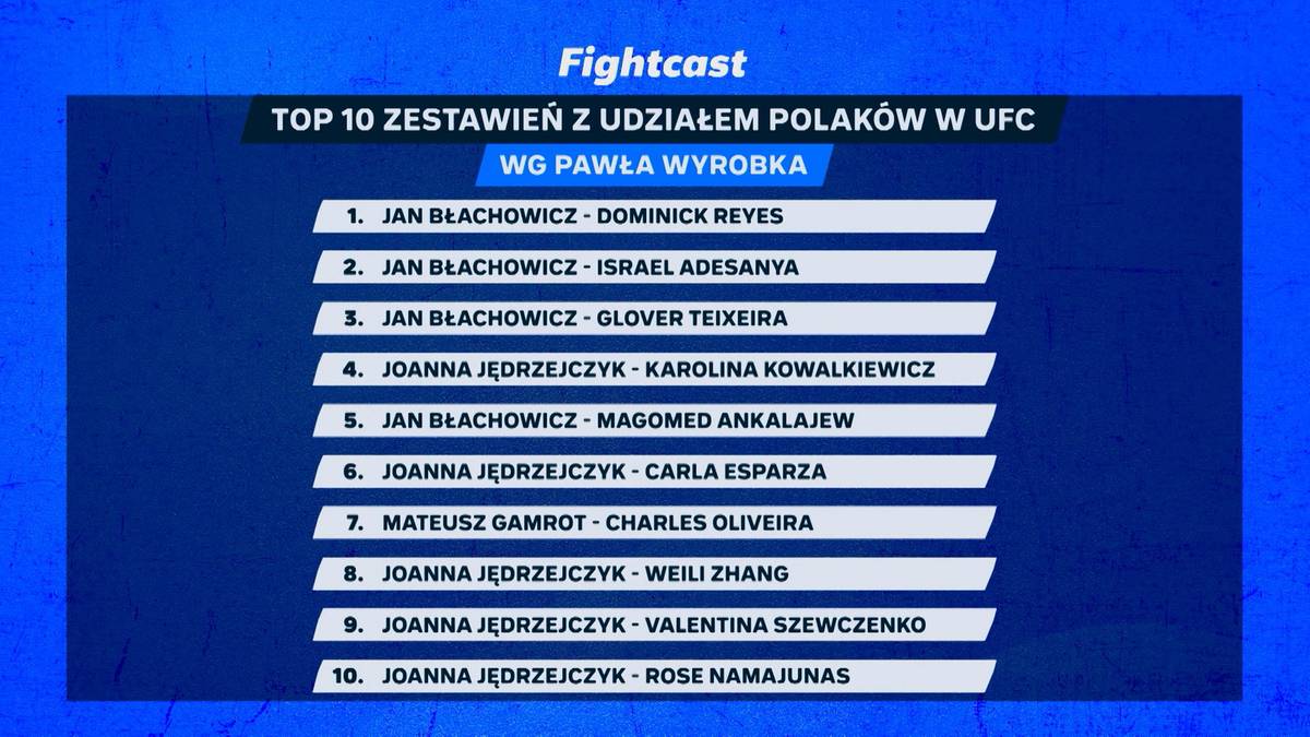 Gamrot zmierzy się z Oliveirą w walce wieczoru gali UFC Fight Night w Rio de Janeiro. Dla Polaka będzie to wielka szansa na wbicie się do absolutnej czołówki kategorii lekkiej. Można zatem zastanawiać się, czy to będzie jedna z największych walk w UFC, w której udział weźmie Polak. Eksperci Polsatu Sport podali swoje Top 10 takich zestawień.