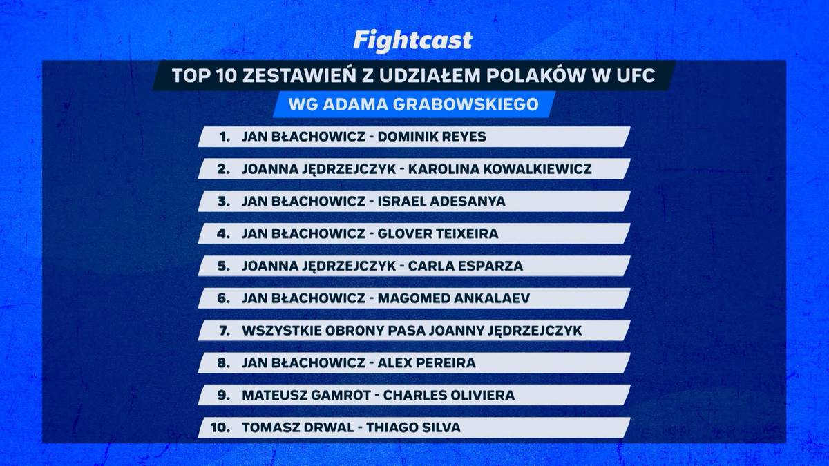 - Ja mam słabość do Janka Błachowicza. Trenowaliśmy razem wiele lat. Waga tej walki przed i po może być różna. Jeżeli Mateusz wygra i będzie się liczył w stawce, to powiemy, że to była super ważna walka. Jeśli przegra to uznamy, że to była jedna z wielu, które mieli Polacy. Umieściłem walkę Gamrota z Oliveirą na dole zestawienia - powiedział Adam Grabowski.