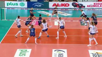 Siatkarki Budowlanych poszły za ciosem w kolejnej partii. Zaczęły od serii wygranych akcji (5:0), a ich przewaga dość szybko dobiła do dziesięciu oczek - gdy asem popisała się Maja Storck, było 13:3. Przy takiej przewadze łódzka drużyna zmierzała po zwycięstwo. Policzanki próbowały jeszcze nawiązać walkę, dwoma asami popisała się Julia Hewelt (21:15), ale różnica była już zbyt duża. Bruna Honorio wywalczyła piłkę meczową (24:19), a Aleksandra Wenerska zdobyła ostatni punkt, kończąc chaotyczną wymianę obu ekip (25:20).