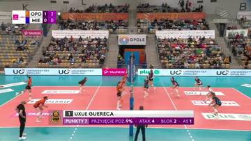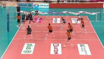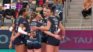 W premierowej odsłonie, po wyrównanym początku (8:8), przewagę zaczęły budować siatkarki z Opola (10:8, 16:12). Gospodynie miały w tym secie wyraźną przewagę w ataku i utrzymywały punktowy dystans, choć mielczanki próbowały gonić wynik. Katarzyna Zaroślińska-Król asem serwisowym wywalczyła piłkę setową (24:20), a Hanna Hellvig zdobyła brakujący punkt skutecznym atakiem (25:21).