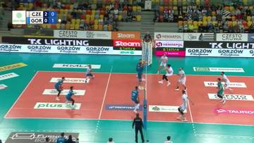 Wygrany set uskrzydlił gorzowian również na początku kolejnego seta. Goście dobrze prezentowali się w polu serwisowym - asem popisał się Chizoba Neves (2:3), dwa kolejne dołożył Kamil Kwasowski (6:11). Gospodarze gonili wynik, po asie Milada Ebadipoura złapali kontakt (15:16), końcówka toczyła się jednak pod dyktando gorzowian. Siatkarze Cuprum skutecznie rozstrzygali kolejne akcje, Mathis Henno wywalczył piłkę setową, a pomyłka gospodarzy w ataku zakończyła seta (18:25).