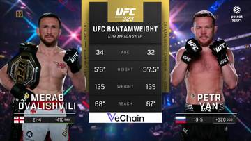 Petr Yan (20-5) niespodziewanie pokonał Meraba Dvalishviliego (21-5) jednogłośną decyzją sędziów (49-46, 49-46, 48-47) i został nowym mistrzem UFC w wadze koguciej. 32-latek po raz drugi w karierze został posiadaczem "złota" federacji w tej kategorii wagowej.
