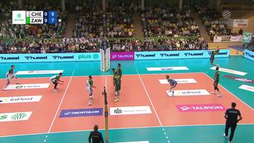 Początek trzeciego seta to ciąg dalszy festiwalu Mateusza Bieńka w polu serwisowym - środkowy zawiercian dołożył trzy kolejne asy w jednym ustawieniu (4:10). Goście utrzymywali punktowy dystans i pewnie zmierzali po zwycięstwo. Nie wybiła ich z rytmu nawet długa przerwa przy stanie 14:18, spowodowana problemami z protokołem elektronicznym. Punktowy blok dał zawiercianom piłkę meczową (18:24), a spotkanie zamknął skutecznym atakiem Jakub Czerwiński (19:25).