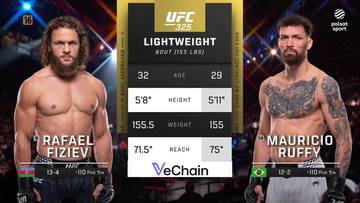 155 lb: Mauricio Ruffy (13-2) pokonał Rafaela Fizieva (13-5) przez techniczny nokaut w drugiej rundzie.