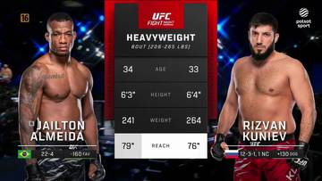 265 lb: Rizvan Kuniev (13-3-1) pokonał Jailtona Almeidę (22-5) jednogłośną decyzją sędziów (30-27, 30-27, 29-28).
