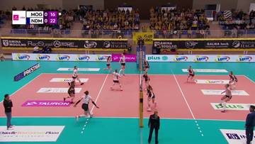 Siatkarki beniaminka nie zwalniały tempa w kolejnym secie. Błyskawicznie odskoczyły przeciwniczkom (3:8) i utrzymywały wyraźną przewagę (6:12, 8:14). Gdy asem popisała się Maja Orzyłowska, różnica wzrosła do dziesięciu oczek (10:22). Punktowy blok dał piłkę meczową (12:24), rywalki obroniły się w dwóch akcjach, ale Zofia Ejsmont skutecznym atakiem przypieczętowała historyczne zwycięstwo (14:25).