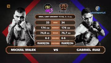 75 kg: Michał Miłek (7-2-0) pokonał Gabriela Ruiza (6-7-0) niejednogłośną decyzją sędziów (28-27, 27-28, 28-27) - MMA.