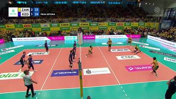 Siatkarze Aluronu kontynuowali dobrą grę również na początku kolejnej partii. Szybko odskoczyli przeciwnikom (8:3) i utrzymywali punktowy dystans (16:11). W środkowej części seta kędzierzynianie zmniejszyli różnicę (17:15), ale skuteczni w ofensywie zawiercianie pewnie punktowali w końcówce. Seta zamknął asem serwisowym Adrian Markiewicz (25:20).