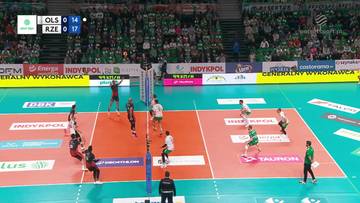 W trzeciej partii nadal minimalnie przeważali rzeszowianie (8:10), ale gospodarze trzymali kontakt do stanu 13:14. Później poszła seria gości - dwoma asami popisał się Yacine Louati, doszedł blok, dwa skuteczne ataki Artura Szalpuka, jeszcze jeden blok, kolejny as i różnica w jednym ustawieniu wzrosła do dziewięciu oczek (13:22). Mateusz Poręba wywalczył piłkę meczową, a po chwili Louati zakończył ćwierćfinałową rywalizację atakiem z drugiej linii (14:25).